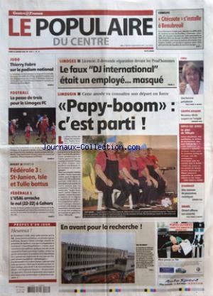 POPULAIRE DU CENTRE (LE) [No 13] du 16/01/2006 - CONFLITS - CITECOUTE S'INSTALLE A BEAUBREUIL - JUDO - THIERRY FABRE SUR LE PODIUM NATIONAL - FOOTBALL - LA PASSE DE TROIS POUR LE LIMOGES FC - RUGBY - FEDERALE 3 - ST-JUNIEN ISLE ET TULLE BATTUS - FEDERALE 1 - L'USAL ARRACHE LE NUL 22-22 A CAHORS - LIMOGES - LICENCIE IL DEMANDE REPARATION DEVANT LES PRUD'HOMMES - LE FAUX DJ INTERNATIONAL ETAIT UN EMPLOYE MASQUE - LIMOUSIN - CETTE ANNEE VA CONNAITRE SON DEPART EN FORCE - PAPY-BOOM - C'EST PARTI - PDF Online